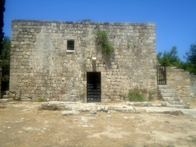 The highest point of the hill is dominated today by a church dedicated to the Virgin and the monastery to which it belongs,built by the Knights on the site of an older Byzantine church, beyond the narthex, there are two side chapels with vaulted ceilings. At the southern end of the building there are the ruins of an Early Christian cruciform baptistery.